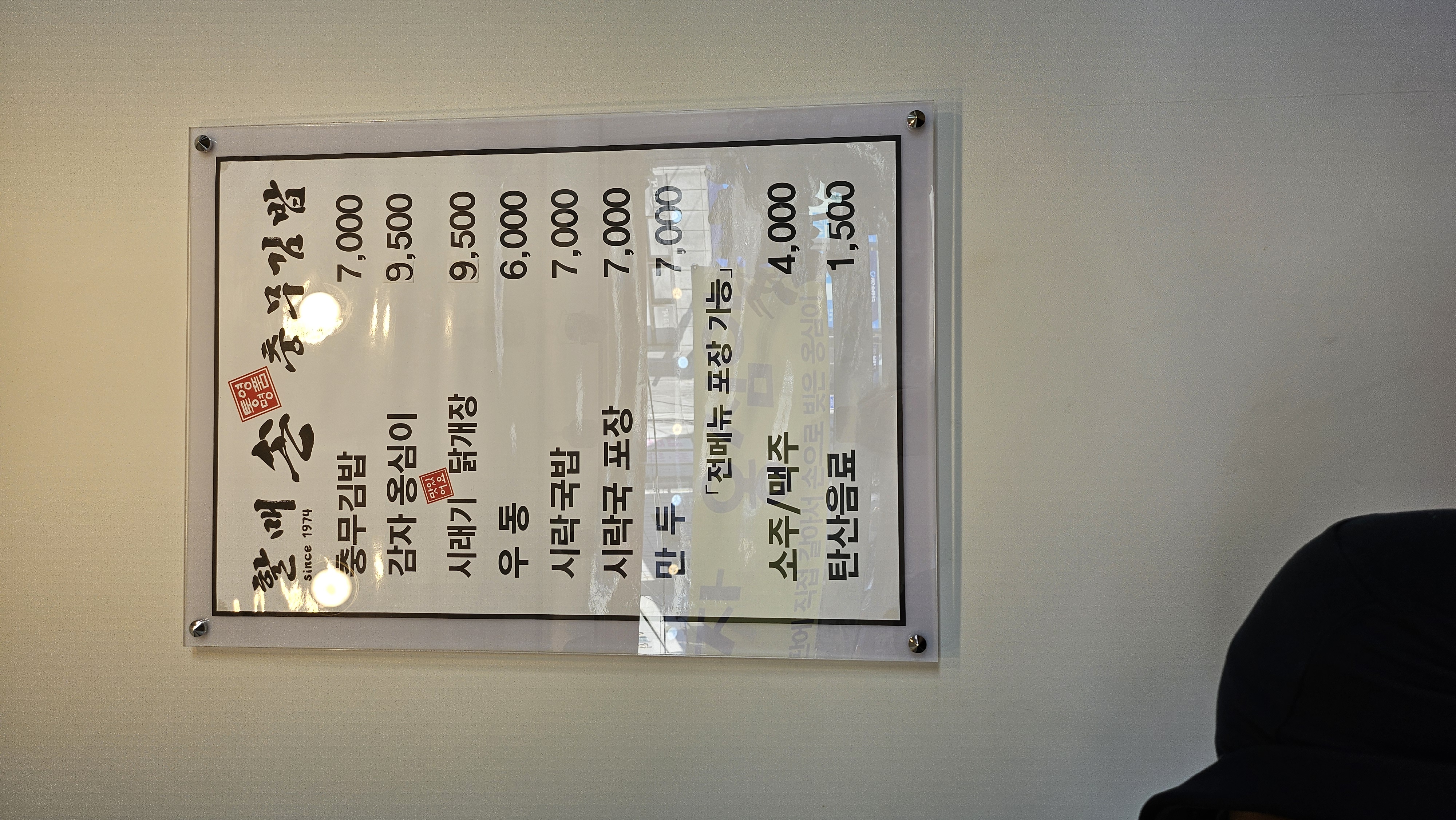 메뉴판은 왼쪽과같다.