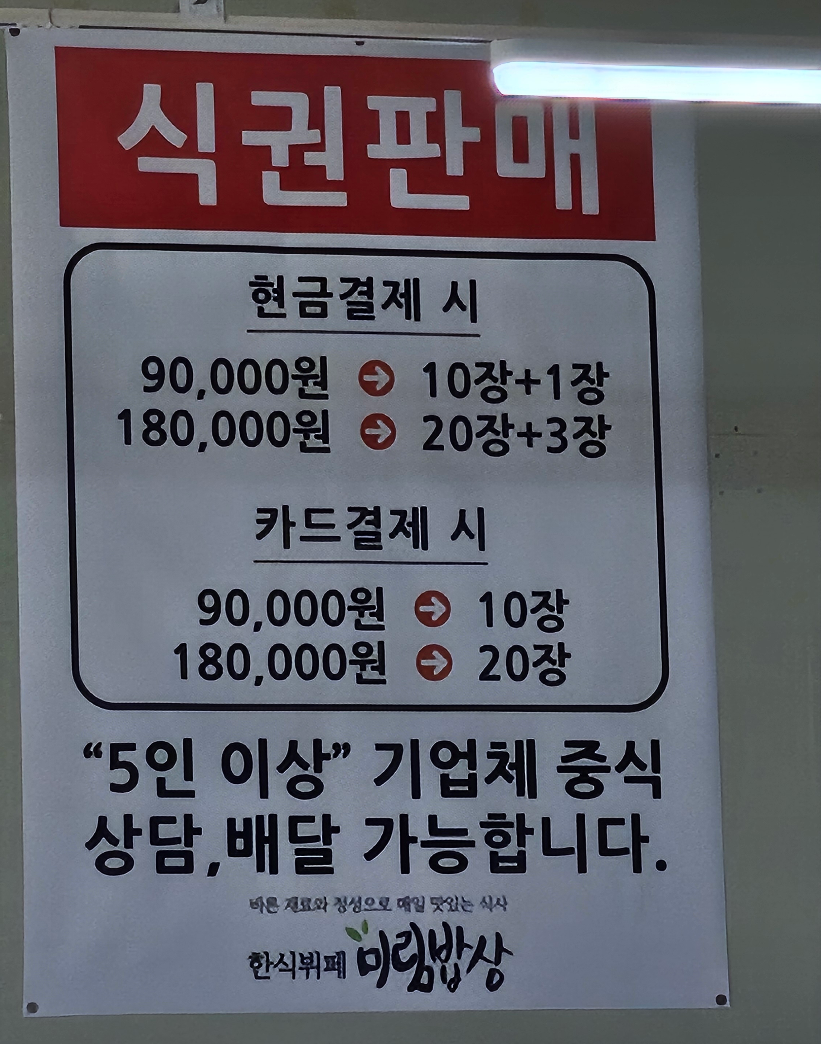 식권을 구매해 그때 그때 가서 먹을 수도 있다.