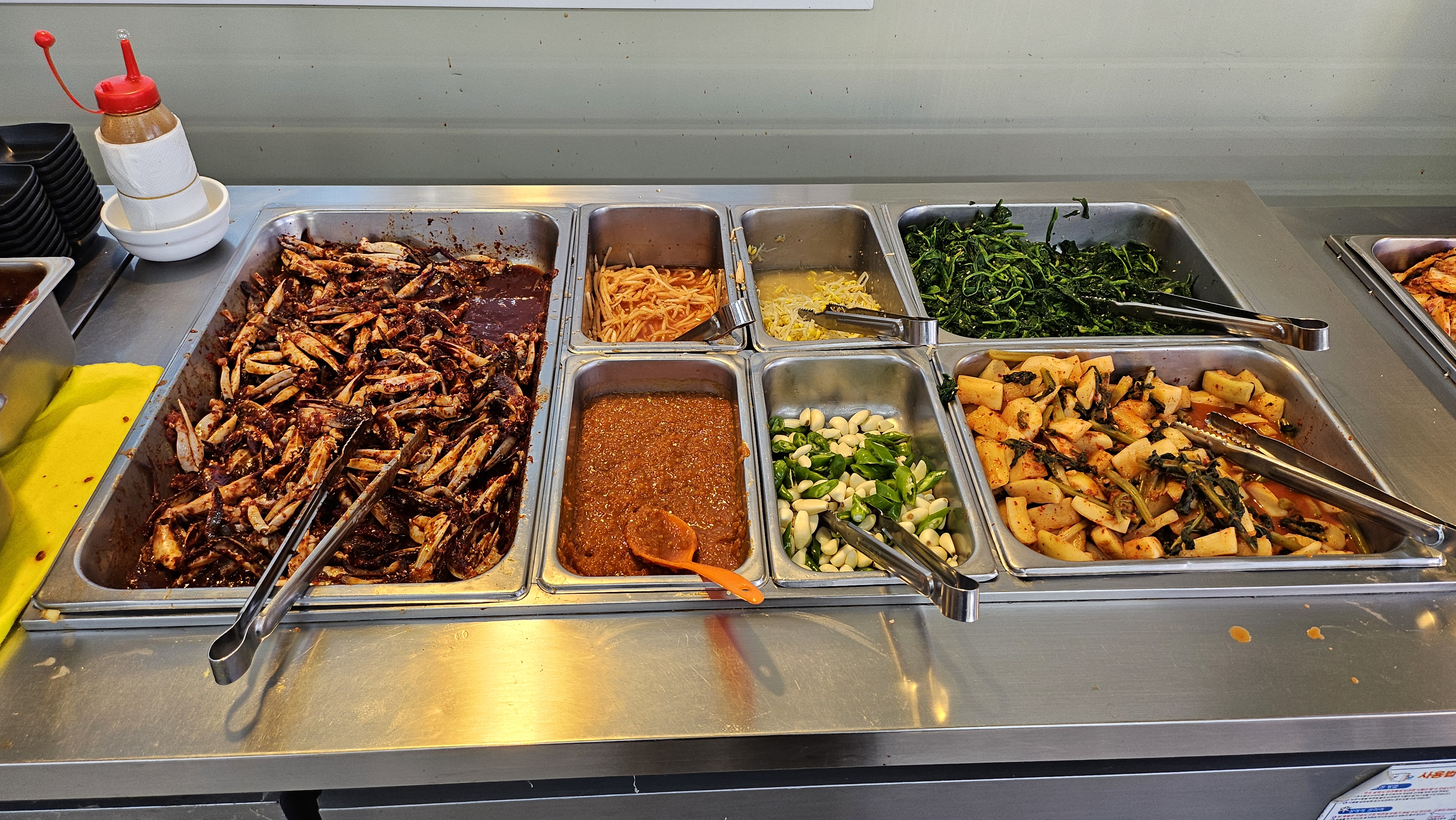 콩나물과 사진에선 짤렸지만 생고추와 마늘, 깍뚜기와 시금치 나물도 있었고...