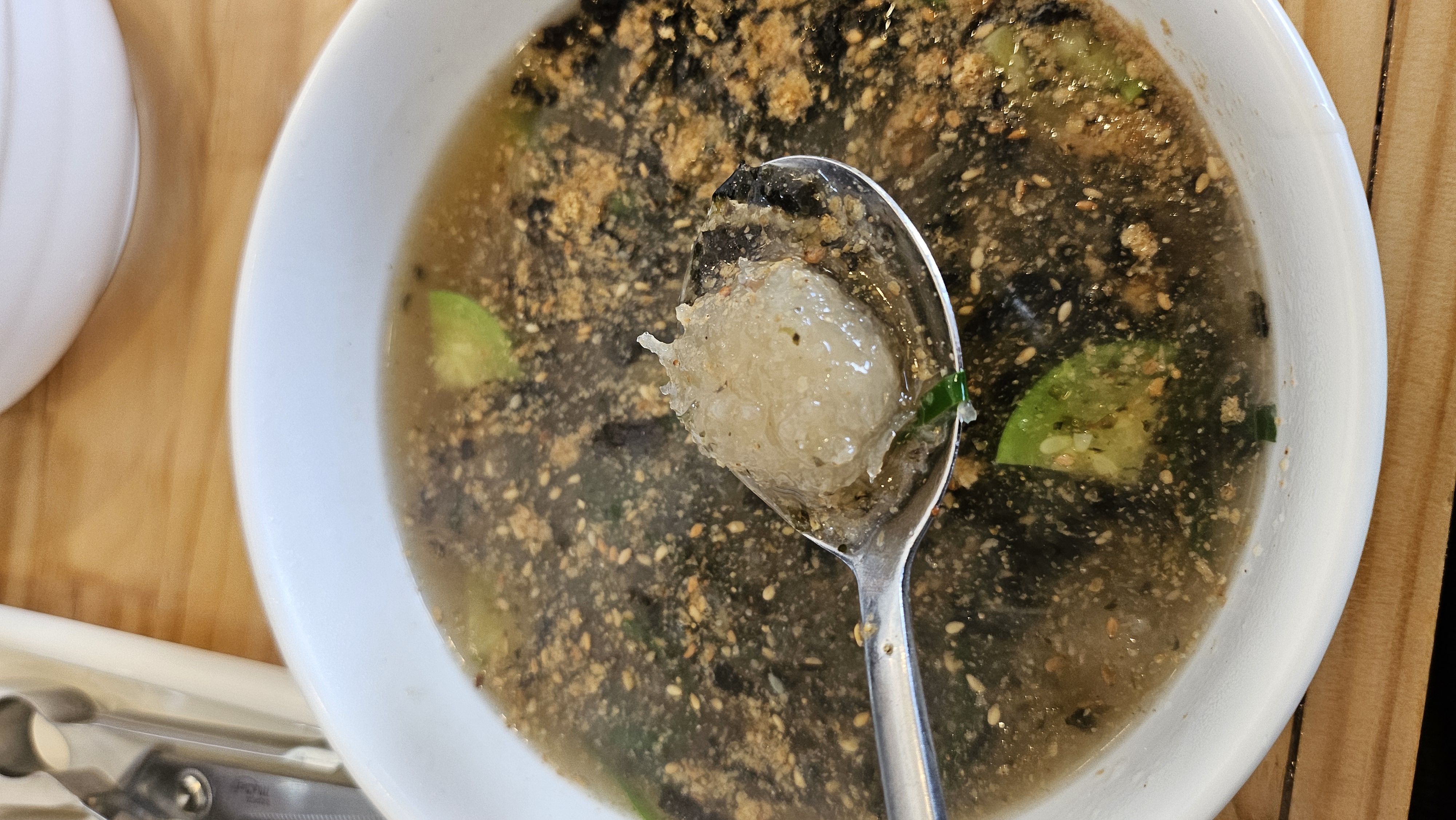 아무래도 옹심이가 사이즈가 큼직큼직하다보니 국물이 배는데 한계가 있는데,