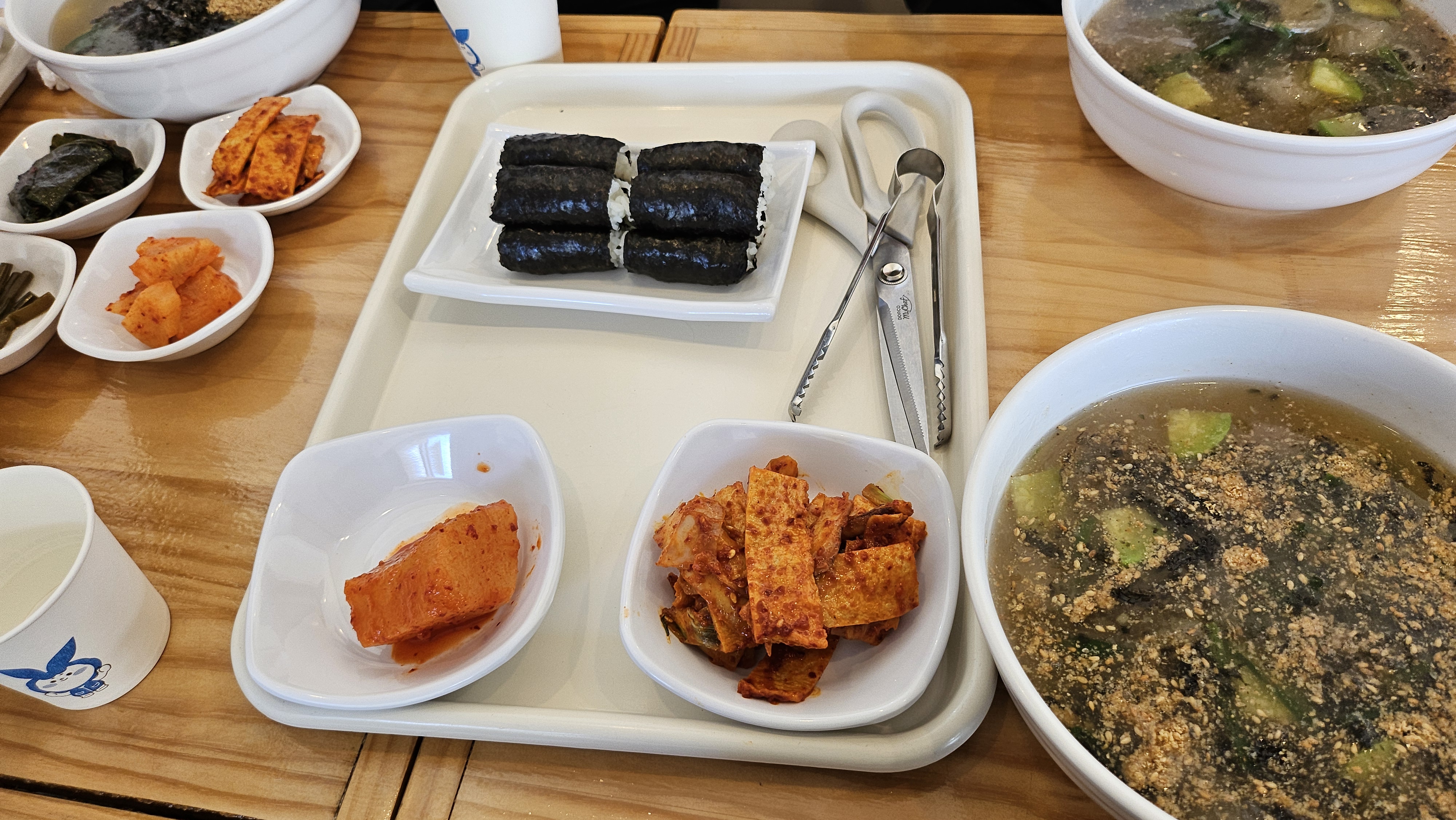 감자옹심이와 충무김밥을 동시에 내어 주시는데,