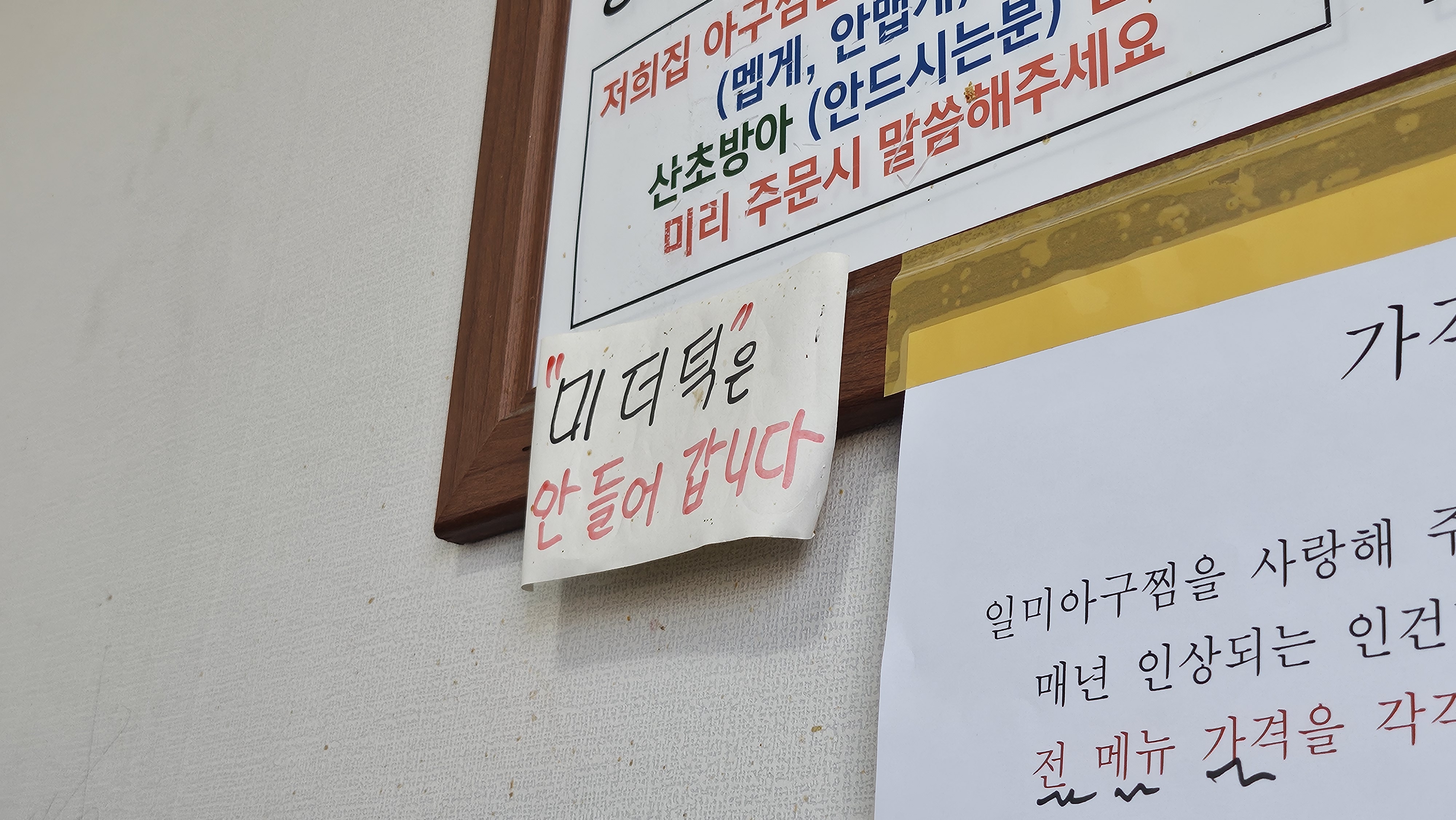 그리고 참고로 일미 아구찜의 경우 미더덕은 들어가지않는다.