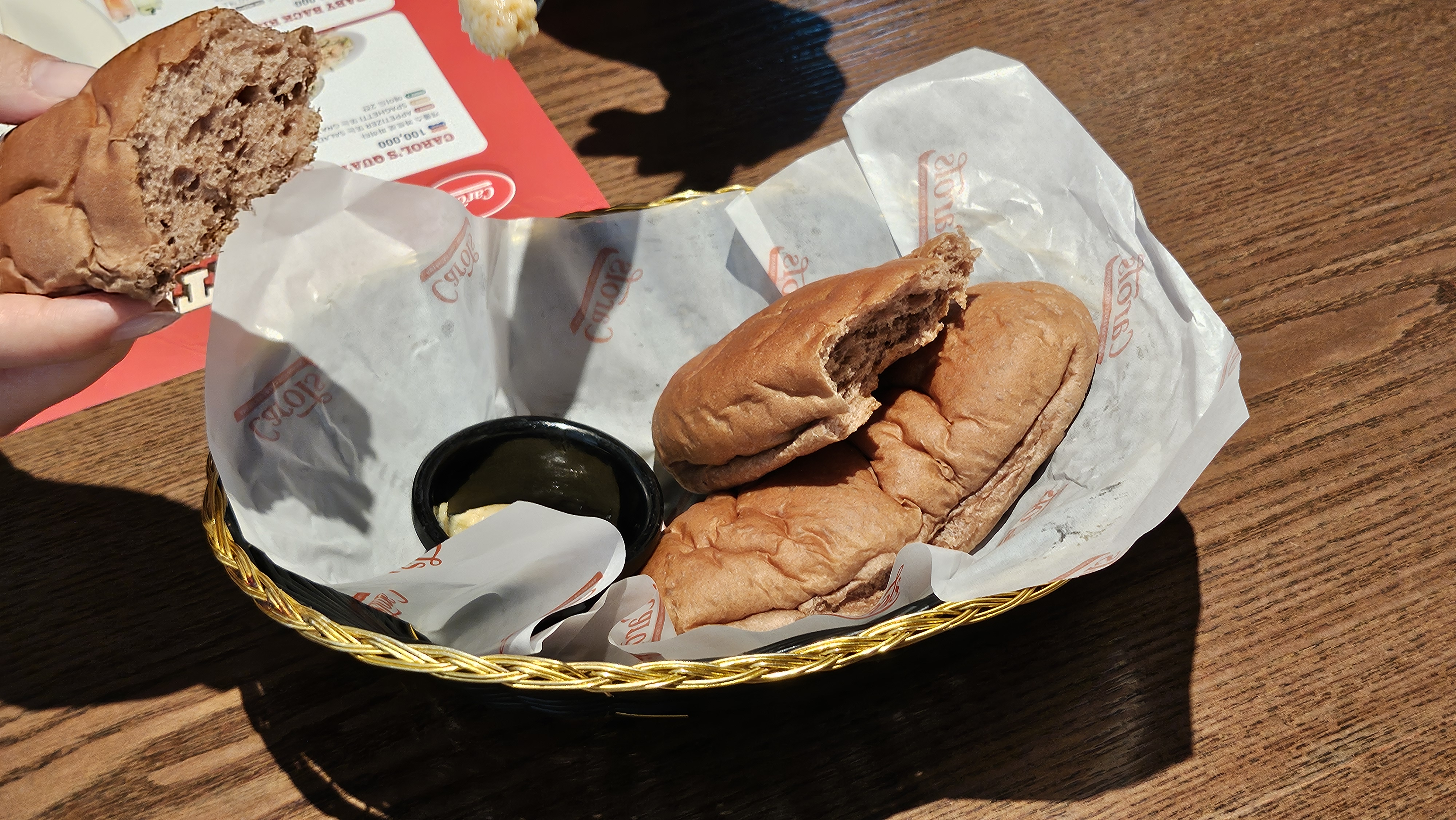 자리에 앉으면 메뉴 소개 종이가 자리에 깔려있고, 식전빵을준다. (메뉴판도 있었는데 촬영을 못했다.)