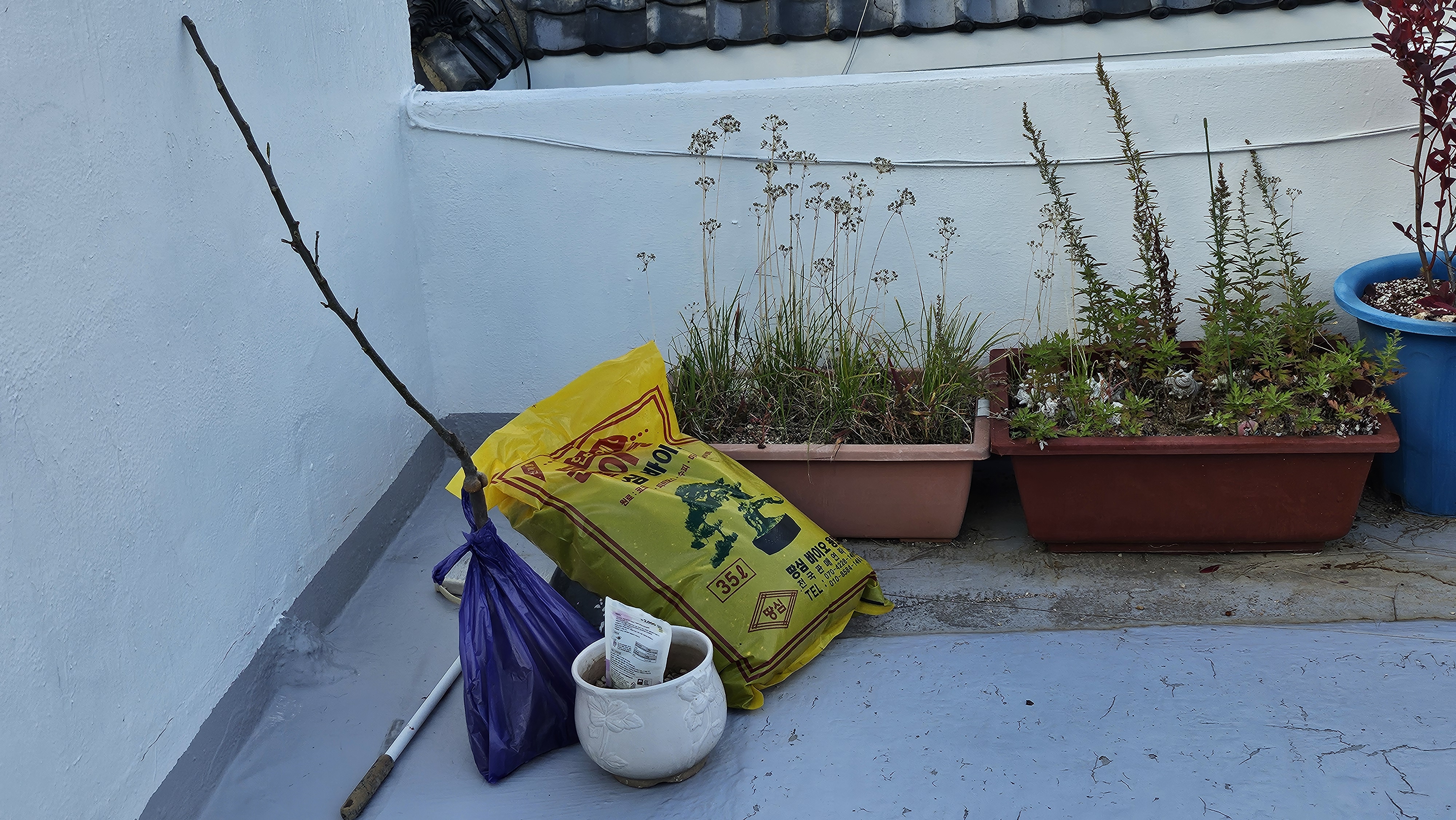 플라스틱이라 관리가용이하고, 사이즈도 충분히 커서 이화분에 사과를 키워보기로했다.