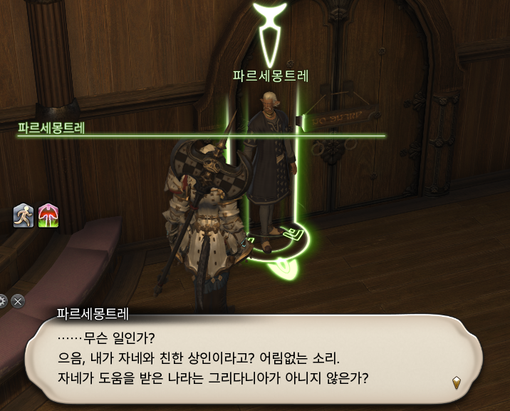 퀘스트를 받고 대화문을 쭉쭉넘기면 유문이 빛난다