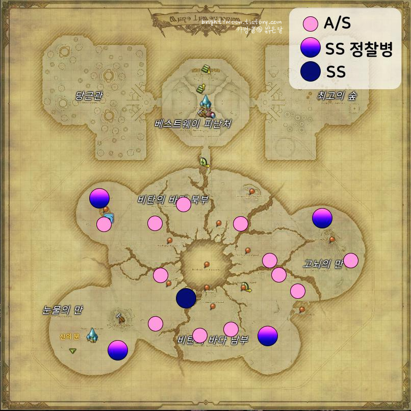 [파이널판타지XIV] 효월 A급, S급 마물 위치 (지도) 본문